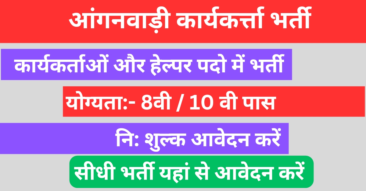 आंगनवाड़ी कार्यकर्ता भर्ती 2024 के आवेदन शुरू हो चुके हैं, जो सामाजिक कल्याण और बाल विकास विभाग के द्वारा राज्य की आंगनवाड़ी केन्द्रो में 834 रिक्त पदों को भरने हेतु ऑफलाइन आवेदन मांगे गए। इस आर्टिकल में हम आपको Anganwadi Worker Vacancy से सबंधित सभी जानकारी प्रदान किया गया है तो आप इस लेख को अंतिम तक अवश्य पढ़े।