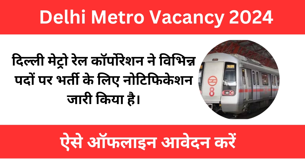 दिल्ली मेट्रो की इस नौकरी के लिए उम्मीदवार अधिकारिक वेबसाइट पर जाकर आवेदन कर सकते हैं। दिल्ली मेट्रो में इस नौकरी के लिए आवेदन प्रक्रिया शुरू हो गई है। इस आर्टिकल में हम आपको Delhi Metro Vacancy 2024 प्रक्रिया से जुड़ी सभी महत्वपूर्ण जानकारी मिलेगी, जैसे आवेदन प्रक्रिया, महत्वपूर्ण तिथियां, आवेदन शुल्क, आयु सीमा, योग्यता, पदों की संख्या, यदि आप इस आर्टिकल को अंतिम तक अवश्य पढ़े।