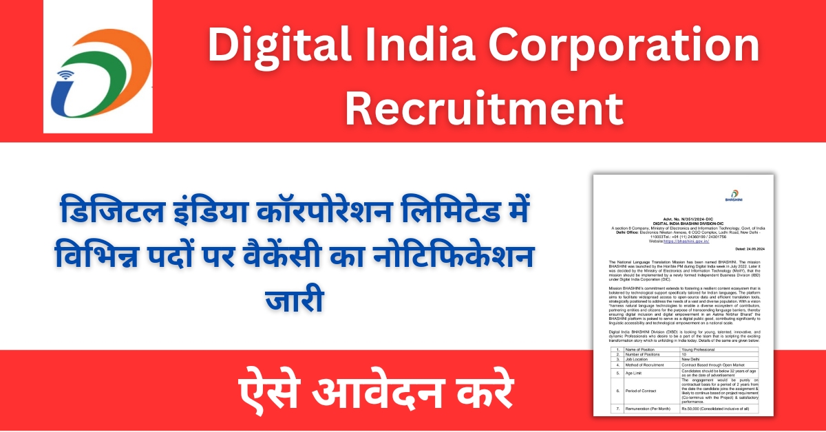 Digital India Corporation Recruitment : डिजिटल इंडिया कॉर्पोरेशन में नौकरी पाने का मौका, ऐसे आवेदन करे