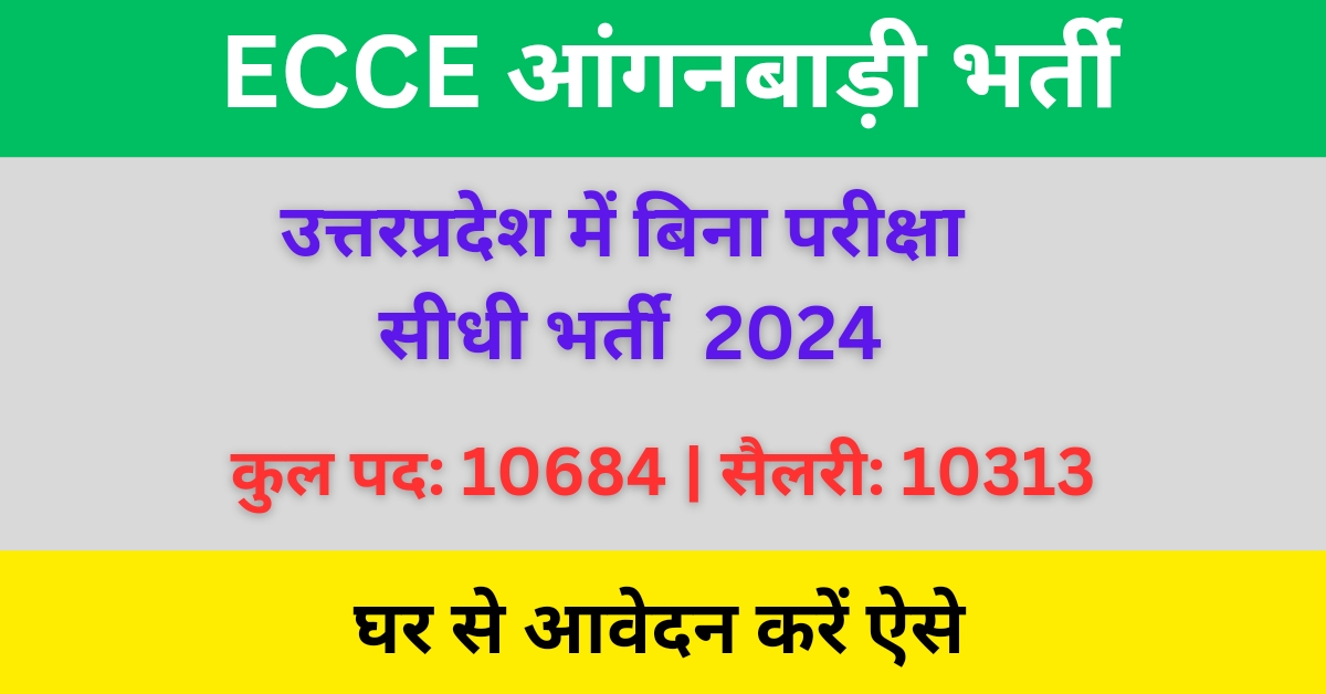 ईसीसीई एजुकेटर भर्ती 2024 के लिए सरकार नेटिफिकेशन जारी कर दिया है । ECCE Educator Vacancy 2025 मे ऑनलाइन आवेदन मांगे जाएंगे इसके लिए सरकार जल्दीवेबसाइट की शुरुआत करेगी जहां से आप उत्तर प्रदेशआंगनबाड़ी भर्ती के लिए ऑनलाइन आवेदन कर सकेंगे।