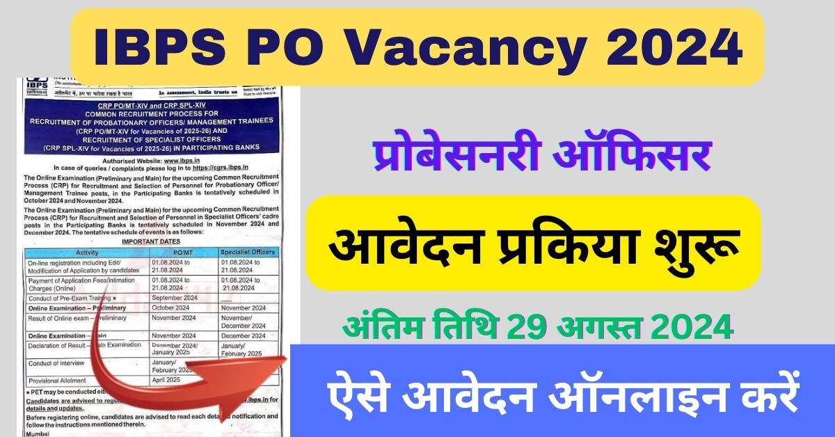 इच्छुक उम्मीदवार अधिकारिक वेबसाइट के माध्यम से ऑनलाइन आवेदन कर सकते हैं। इस लेख में हम आपको भर्ती शैक्षणिक योग्यता, आयु सीमा, चयन प्रक्रिया और IBPS PO MT Vacancy 2024 से संबंधित सभी जानकारी प्रदान किया है। तो आप इस लेख को अंतिम तक अवश्य पढ़े।