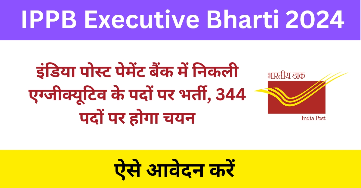 इंडिया पोस्ट पेमेंट बैंक एग्जीक्यूटिव पदों पर आवेदन के लिए पात्र एवं इच्छुक उम्मीदवार इस भर्ती के लिए ऑनलाइन माध्यम से आवेदन फॉर्म भर सकते हैं। इस आर्टिकल में हम आपको IPPB Executive Bharti 2024 से सबंधित सभी जानकारी प्रदान करने वाले हैं तो आप इस आर्टिकल को अंत तक अवश्य पढ़े।