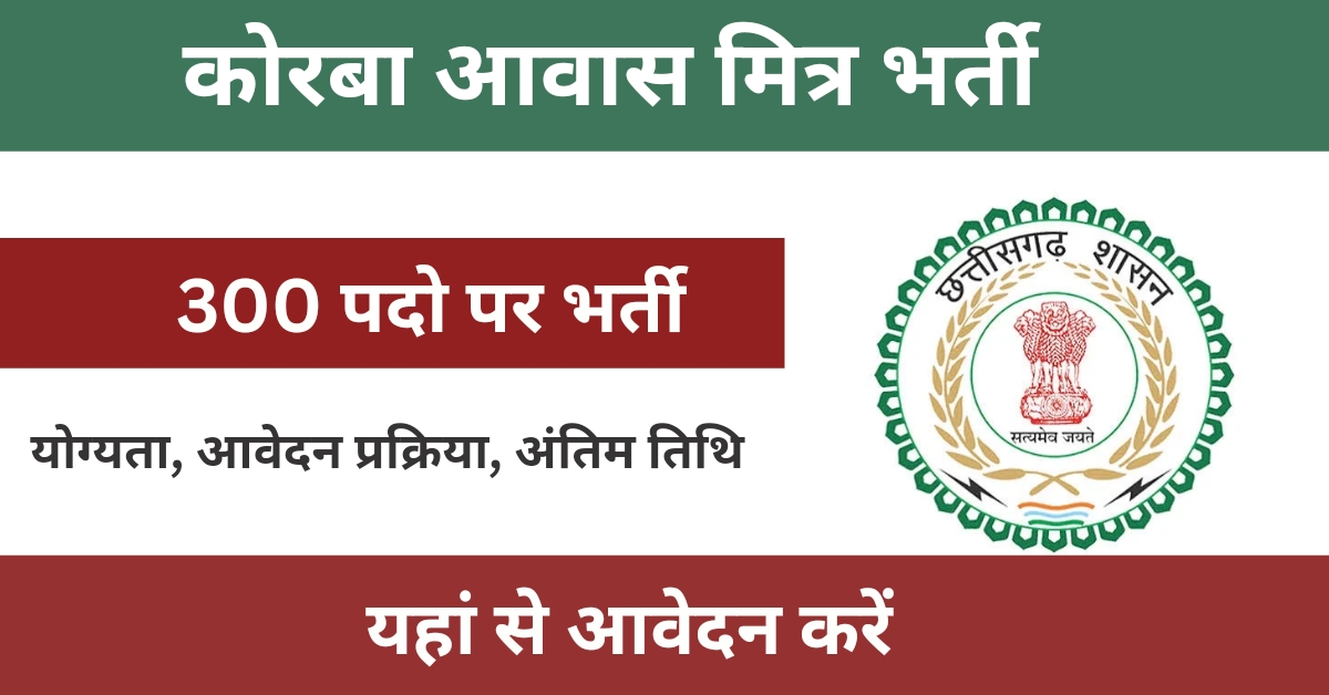 korba Awas Mitra bharti 2024 : छ.ग. जिला पंचायत कोरबा में आवास मित्र के 300 पदों पर भर्ती