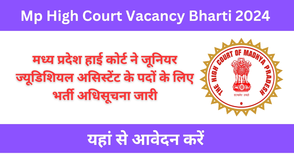 Mp High Court Vacancy Bharti 2024 :- मध्य प्रदेश हाईकोर्ट ने जूनियर ज्यूडिशियल असिस्टेंट (JJA ) भर्ती 2024 के लिए नोटिफिकेशन जारी किया गया है। यह सरकारी नौकरी के इच्छुक उम्मीदवारों के लिए एक सबसे अच्छा अवसर है। इस भर्ती के लिए 3 अक्टूबर 2024 को जारी की गई इस अधिसूचना के अनुसार, योग्य उम्मीदवार 3 अक्टूबर से 15 अक्टूबर 2024 तक ऑनलाइन आवेदन कर सकते हैं।