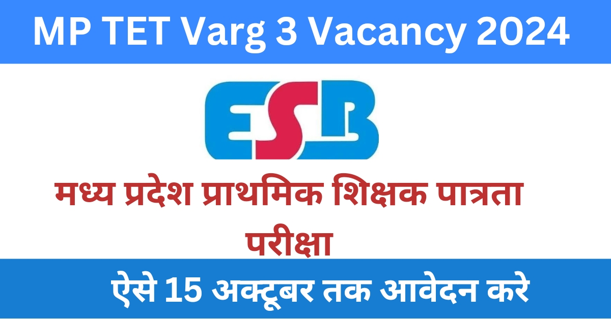 MP TET Varg 3 Vacancy 2024:- मध्य प्रदेश शासन, स्कूल शिक्षा विभाग एवं मध्य प्रदेश शासन, जनजातीय कार्य विभाग द्वारा प्राथमिक शिक्षक के लिए संयुक्त पात्रता परीक्षा 2024 के आयोजन के संबंध में सूचना जारी कर दी गई है। यह उन उम्मीदवारों के लिए एक सुनहरा अवसर है जो मध्य प्रदेश के सरकारी स्कूलों में शिक्षण पदों में नौकरी हासिल करना चाहते हैं।