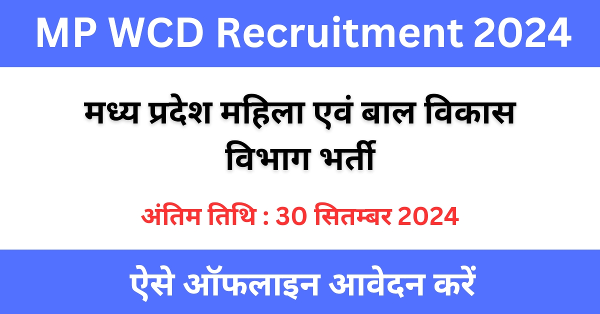 योग्य आवेदक ऑफलाइन माध्यम से इस भर्ती के लिए आवेदन कर सकते है। इस भर्ती के लिए आवेदन 09 सितम्बर 2024 तक आवेदन कर सकते हैं। इस आर्टिकल में हम आपको MP WCD Recruitment 2024 से सबंधित सभी जानकारी प्रदान करने वाले हैं तो आप इस आर्टिकल को अंतिम तक अवश्य पढ़े।