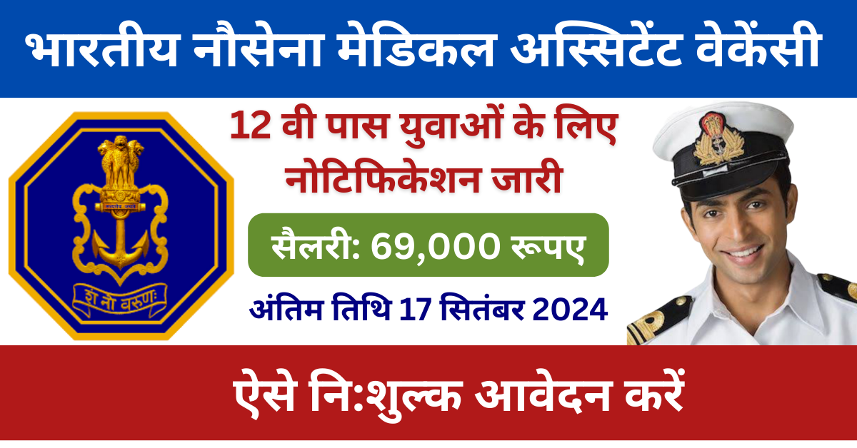इच्छुक और योग्य उम्मीदवार 7 सितंबर 2024 से 17 सितंबर 2024 तक आधिकारिक वेबसाइट के माध्यम से आवेदन कर सकते हैं। इस आर्टिकल में हम आपको Navy SSR Medical Assistant Vacancy 2024 से सबंधित जानकारी जैसे चयन प्रक्रिया, शैक्षणिक योग्यता, आयु सीमा और अन्य महत्वपूर्ण प्रदान किया हैं तो आप इस आर्टिकल को अंतिम तक अवश्य पढ़े।
