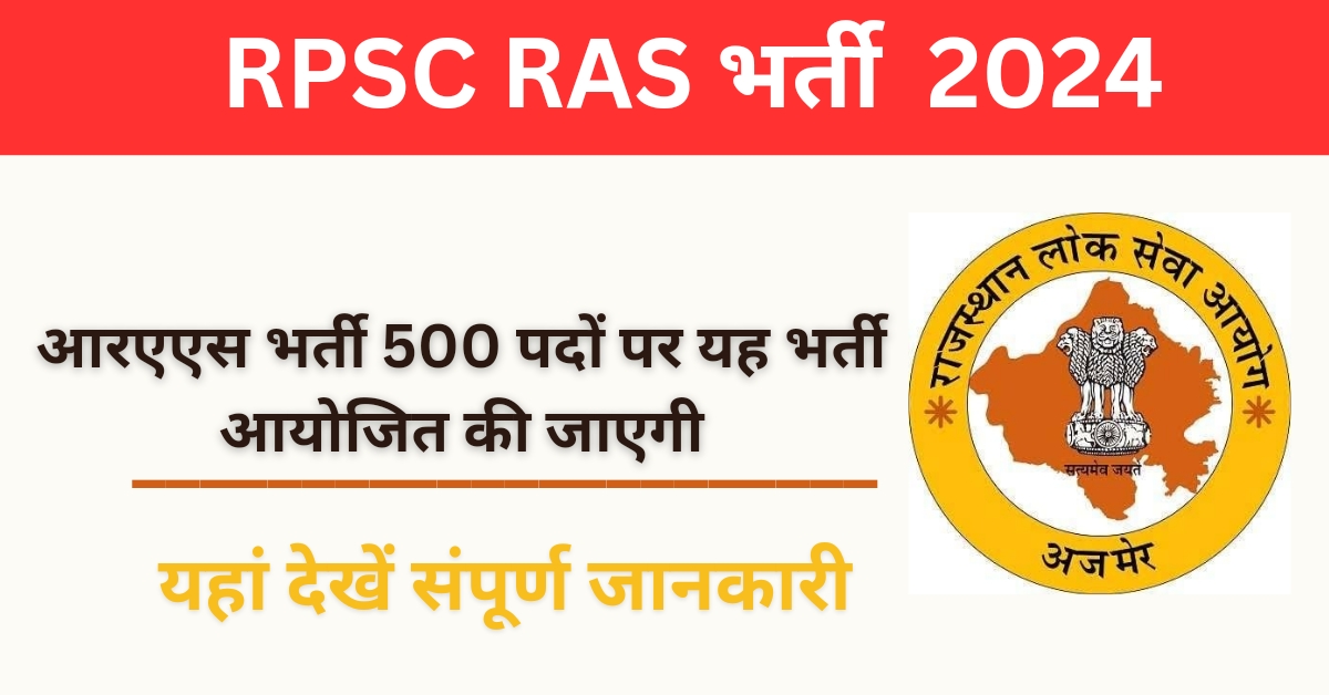 RPSC RAS Vacancy : राजस्थान लोक सेवा आयोग (RPSC) द्वारा आयोजित RPSC RAS Vacancy 2024 की बड़ी खुशखबरी आई है इस बार राजस्थान में 500 पदों के लिए आरएएस भर्ती की जाएगी,इसके लिए राज्य सेवा के 250 पर अधीनस्थ सेवा के भी 250 पद रखे गए हैं। यह भर्ती राजस्थान लोक सेवा आयोग द्वारा कराई जाएगी और इसके लिए नोटिफिकेशन जल्द ही जारी होने की उम्मीद है।