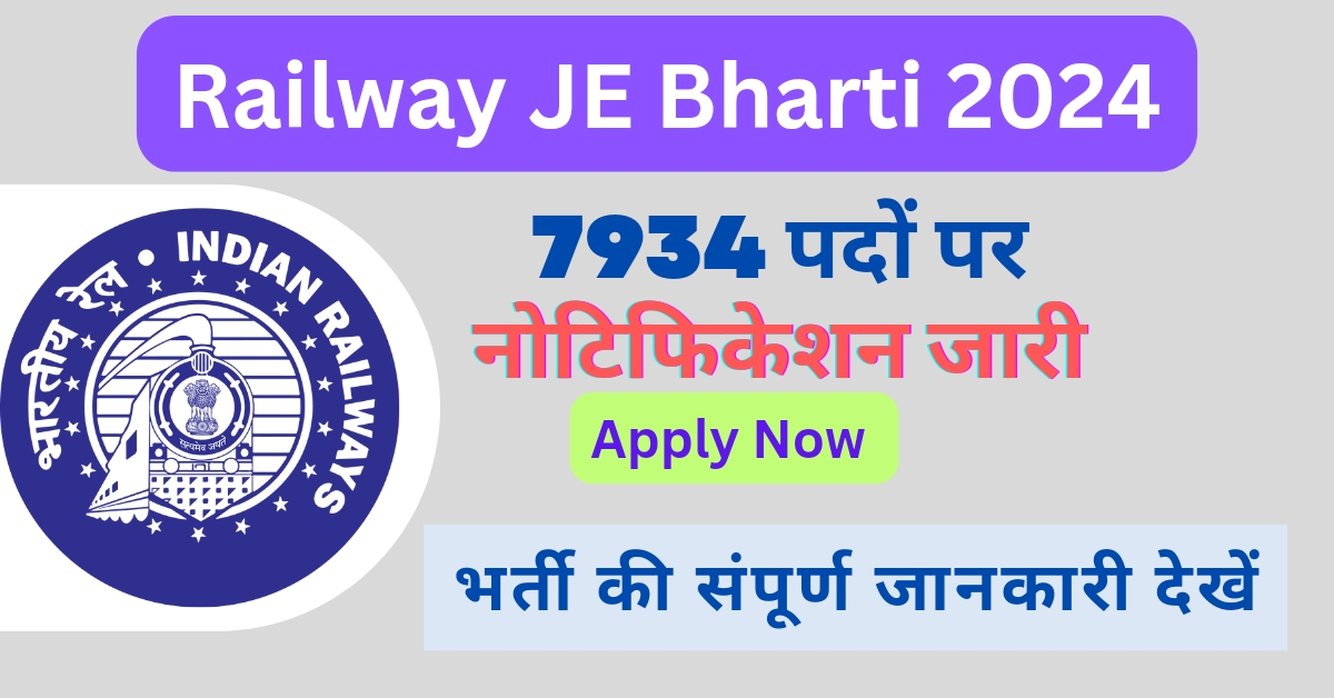 रेलवे सुपरवाइजर भर्ती 2024 का जो नोटिफिकेशन रिलीज हुआ है इस नोटिफिकेशन के अनुसार स्टूडेंट लोगों को जूनियर इंजीनियर सहित आने विभिन्न पदों पर आवेदन करना अनिवार्य है और आप सभी को बताना चाहेंगे कि पद की कुल 7934 पदों पर आवेदन करना अनिवार्य है।