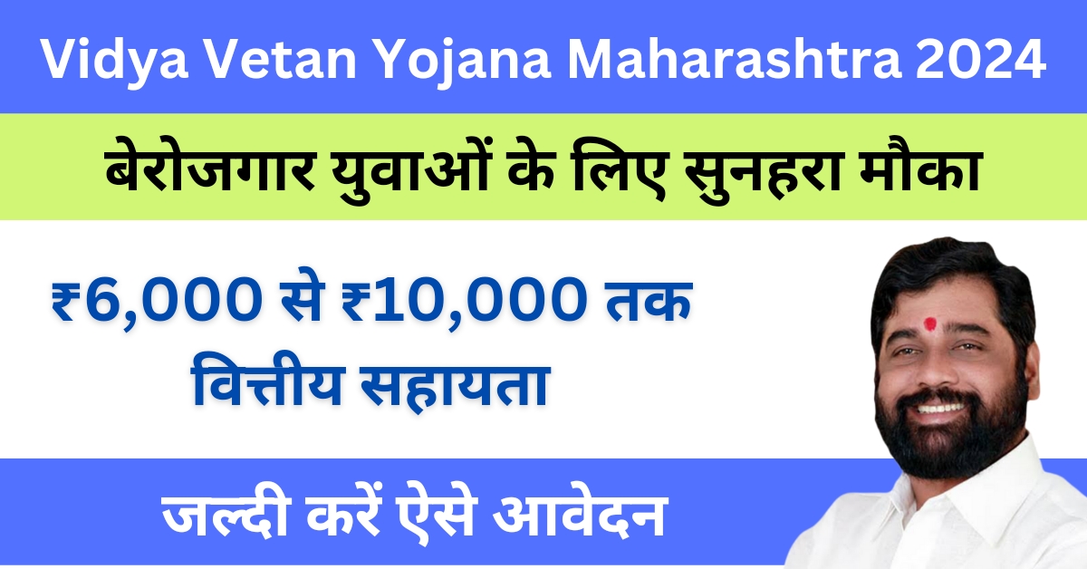 Vidya Vetan Yojana Maharashtra 2024:- महाराष्ट्र सरकार ने राज्य के बेरोज़गार युवाओं और छात्रों के लिए मुख्यमंत्री युवा कार्य प्रशिक्षण योजना शुरुआत की है। इस योजना के तहत युवाओं को हर महीने 10,000 रुपये तक की आर्थिक सहायता दी जाएगी, साथ ही उन्हें 6 महीने के लिए किसी कंपनी में अप्रेंटिसशिप के अवसर भी मिलेंगे।
